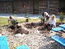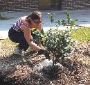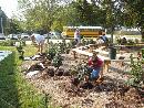 In September 2005, forty-two camellias were planted by parent volunteers in the Mustang Meadows Learning Garden at Mt. Vernon Elementary School in Yorktown, VA. The shrubs will eventually create hedges around the two outdoor classrooms within the garden. The Virginia Camellia Society worked with PTA volunteers to provided the expertise in choosing and planting four varieties: Our Linda, Destiny, Tri Color, and Jerry Hill. The plants should provide colorful blooms while the children are in school to enjoy them.The people who were instrumental in planting the Camellias: Principal Jane Allen-Houk who backed and supported the camellias, former PTA President Margo LaMarsh and current PTA President Belinda Williams who supported and funded the project through PTA funds; PTA parents/York County Master Gardeners, Jody Turner, Michelle Gazarik, and Clare Britcher; and Sara Hartian PTA Parent and Mustang Meadows committee member who helped to oversee the planting.