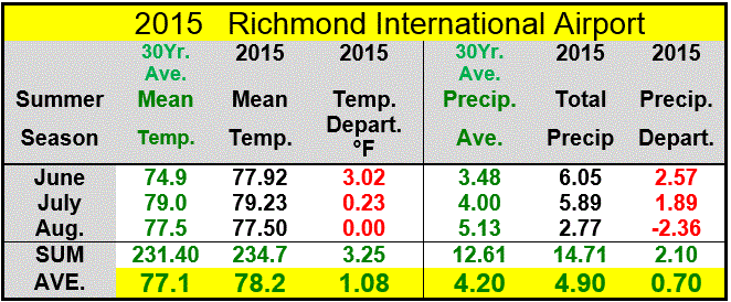 Richmond - from NWS Wakefield (AKQ): "View the NWS AKQ Wakefield August 2015 Climate Summary for Richmond with a click here " - [ -/+ - ]