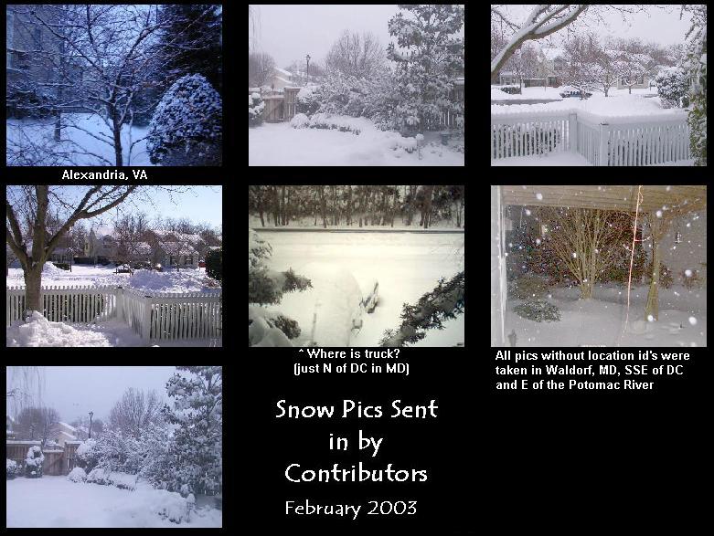 ... SNOWS PLASTER NORTHERN VIRGINIA... What an end to winter across much of the area! January's extremely cold temps moderated to more seasonal winter values. However, with the increasing moisture from a series of low pressures crossing the South and Mid-Atlantic, high accumulations of snow, sleet, and ice were recorded. Hardest hit were the areas from northeastern West Virginia (look at Dave Lesher's winter total-to-date!) across the northern half of Virginia into the northern Maryland Eastern Shore. Embedded below, reports from our members and the National Weather Service clarify who did and didn't receive winter's hefty blows. The President's Day Weekend Snowstorm was quite impressive. With a click here, take a look at the totals (with 44" recorded in Garrett County, MD!)