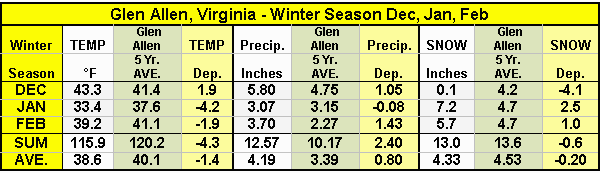 Continued cold temperatures, especially in Virginia, with above normal precipitation at most stations for February 2014. However, temperature averages and precipitation totals were closer to normal than those of January. Severe weather was observed on the 21st across the region. (link to reports below).