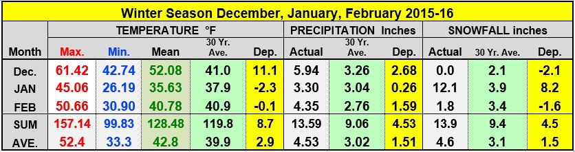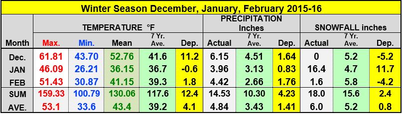 | N date(s) of peak wind gust | 5 total snowfall for 2015-2016 season (inches) |